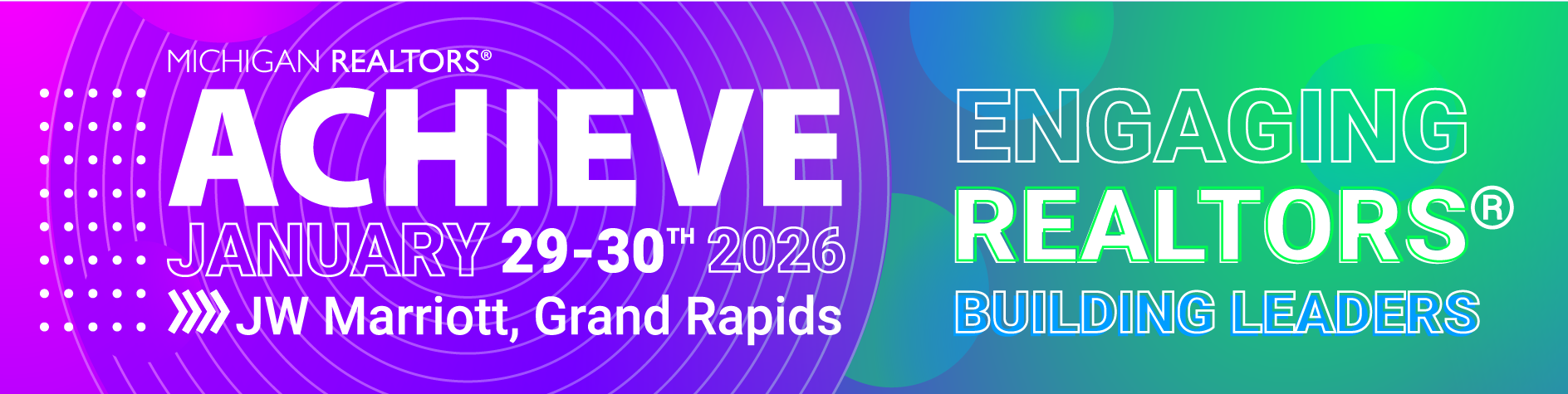 As the premier leadership event of Michigan Realtors®, Achieve provides leaders of every level with the tools needed to be part of the change they want to see in their local associations, offices, and communities. The event gathers highly involved Association leaders and public policy advocates from across Michigan. All members are invited to attend Achieve.